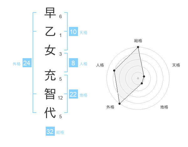 早乙女 充智代さんを姓名の画数から五運を鑑定