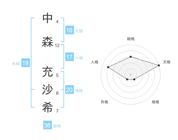 中森 充沙希さんの天格は16画の5点!