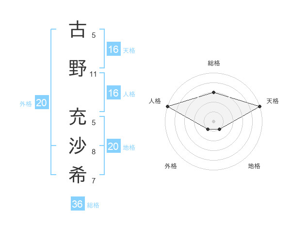 古野 充沙希さんの天格は16画の5点!