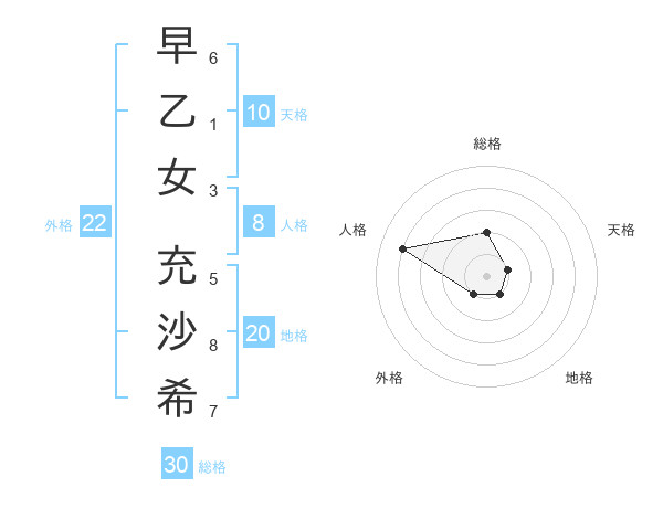 早乙女 充沙希さんの地格は20画の1点!