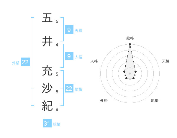 五井 充沙紀さんを姓名の画数から五運を鑑定