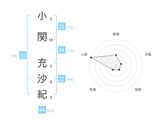 小関 充沙紀さんの総格は44画の2点!