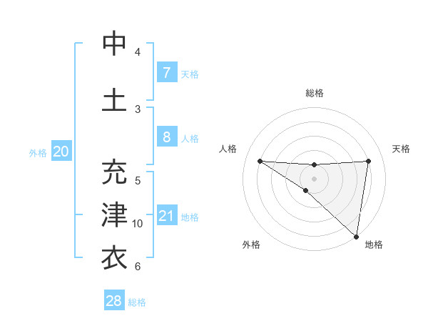 中土 充津衣さんを姓名の画数から五運を鑑定