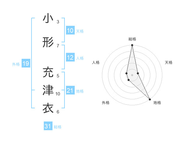 小形 充津衣さんの地格は21画の5点!