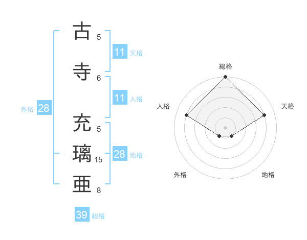 古寺 充璃亜さんを姓名の画数から五運を鑑定