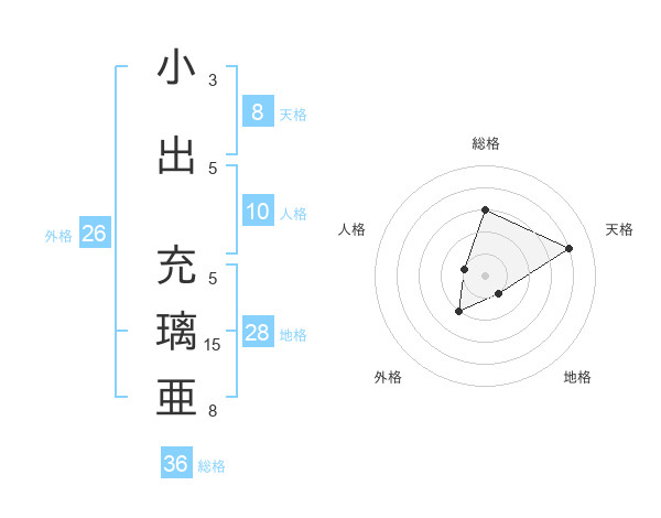 小出 充璃亜さんの天格は8画の4点!