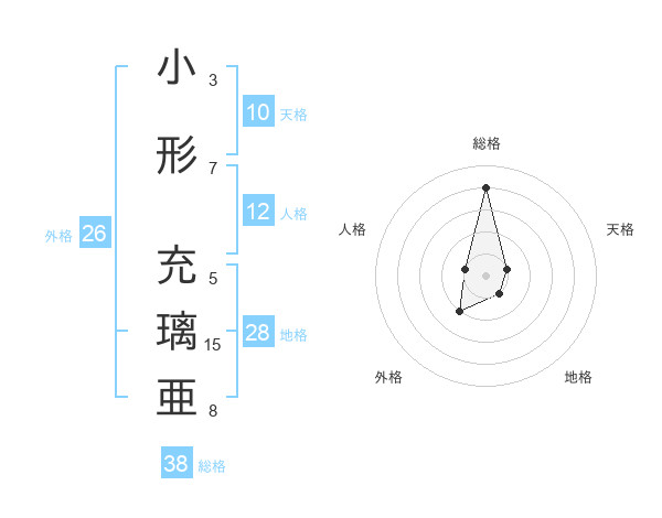 小形 充璃亜さんを姓名の画数から五運を鑑定