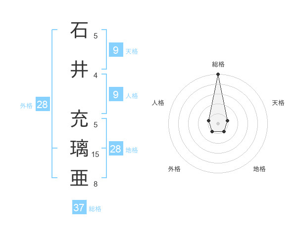 石井 充璃亜さんを姓名の画数から五運を鑑定