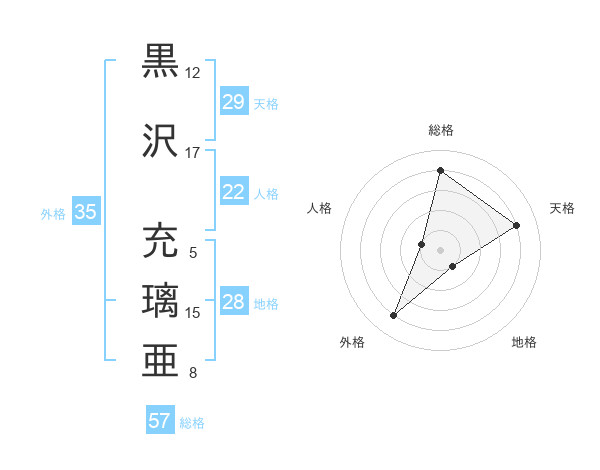 黒沢 充璃亜さんを姓名の画数から五運を鑑定