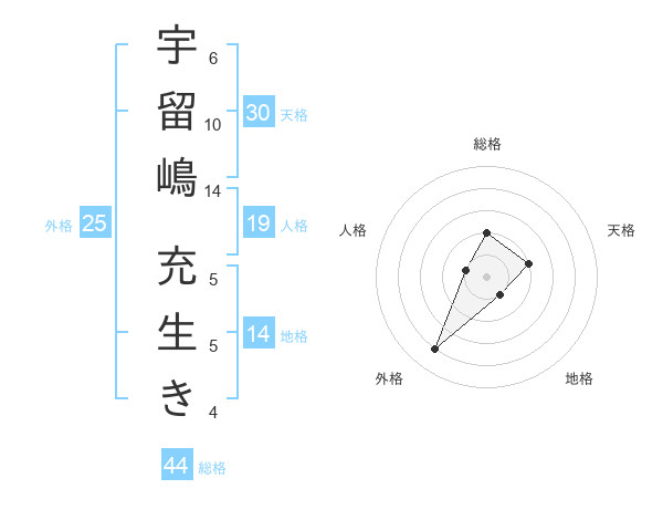 宇留嶋 充生きさんの総格は44画の2点!