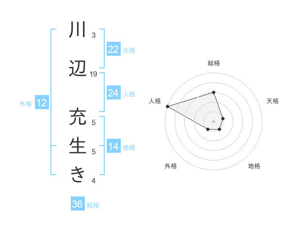 川辺 充生きさんを姓名の画数から五運を鑑定