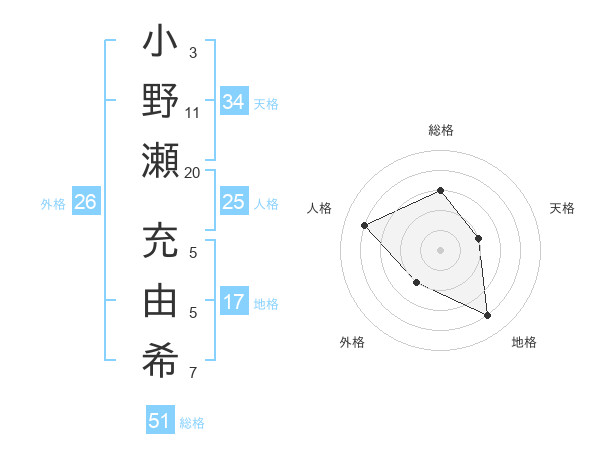 小野瀬 充由希さんを姓名の画数から五運を鑑定