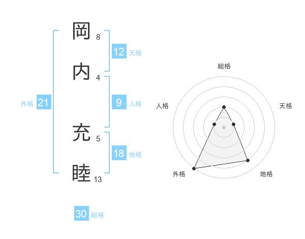 岡内 充睦さんの総格は30画の2点!