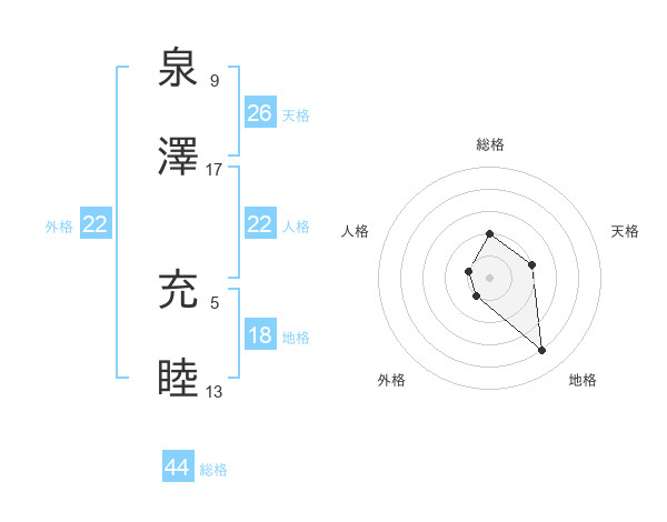 泉澤 充睦さんの総格は44画の2点!