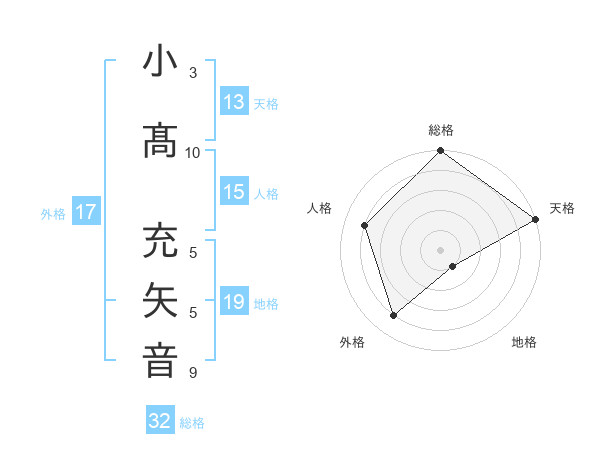 小髙 充矢音さんの天格は13画の5点!