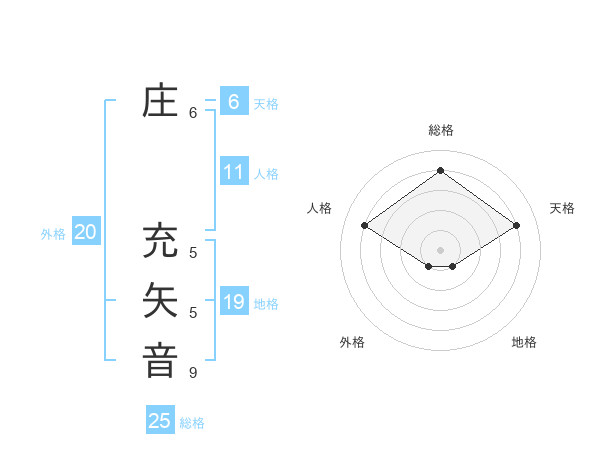 庄 充矢音さんの外格は20画の1点!