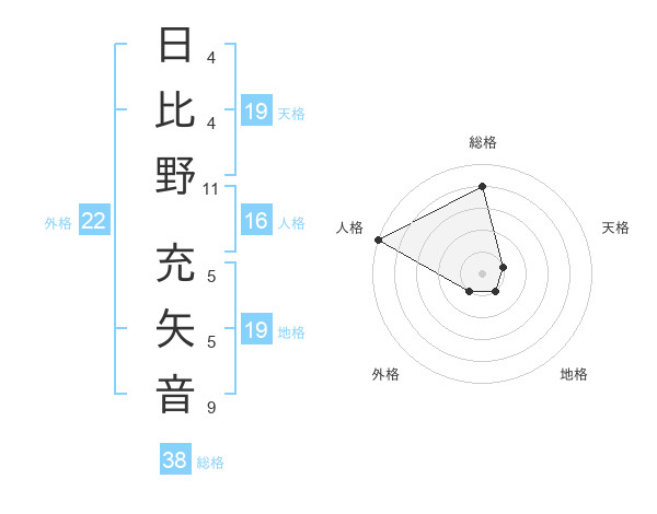 日比野 充矢音さんの外格は22画の1点!