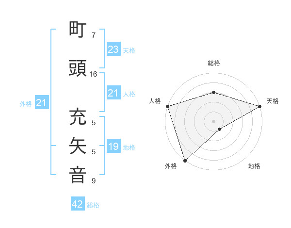 町頭 充矢音さんを姓名の画数から五運を鑑定