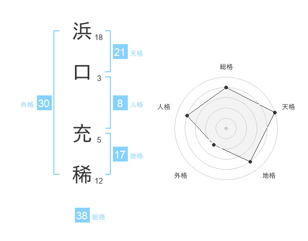 浜口 充稀さんを姓名の画数から五運を鑑定