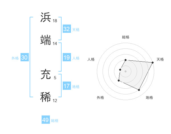 浜端 充稀さんの天格は32画の5点!
