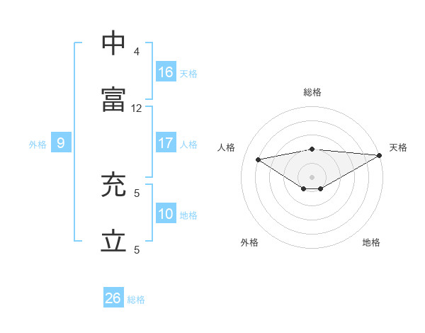 中富 充立さんの総格は26画の2点!