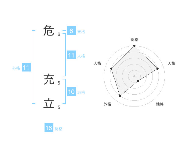危 充立さんの総格は16画の5点!