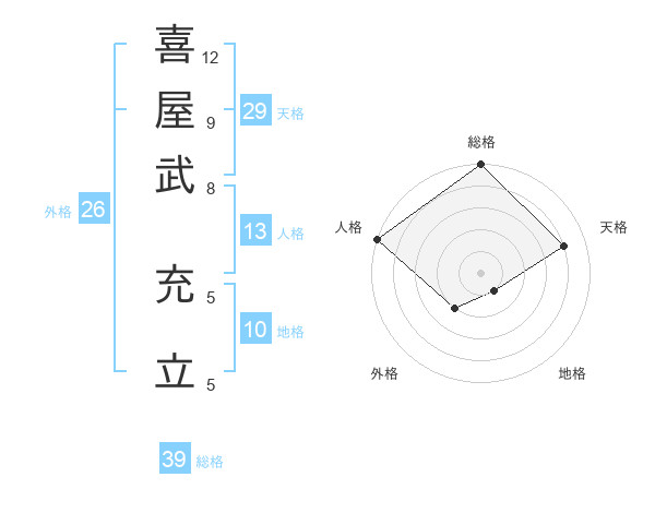 喜屋武 充立さんを姓名の画数から五運を鑑定