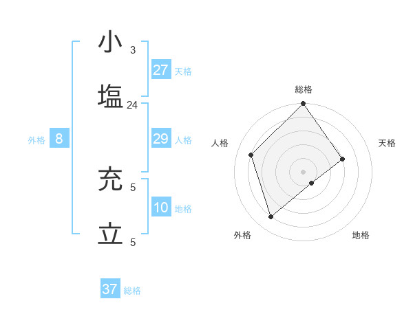小塩 充立さんの総格は37画の5点!