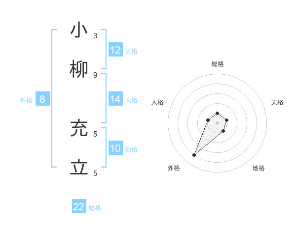 小柳 充立さんの外格は8画の4点!
