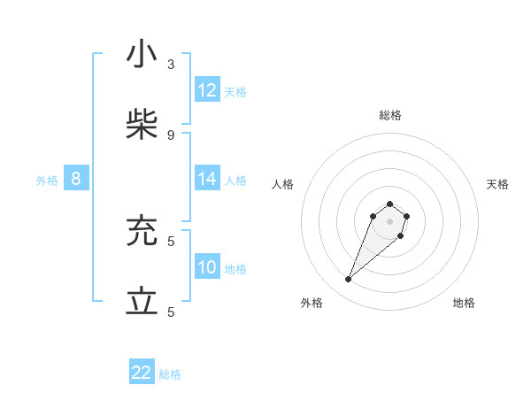 小柴 充立さんの総格は22画の1点!