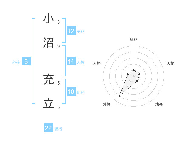 小沼 充立さんの総格は22画の1点!