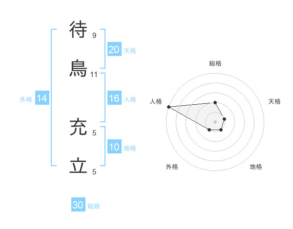 待鳥 充立さんを姓名の画数から五運を鑑定