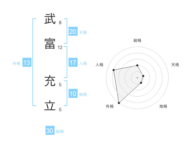 武富 充立さんの総格は30画の2点!