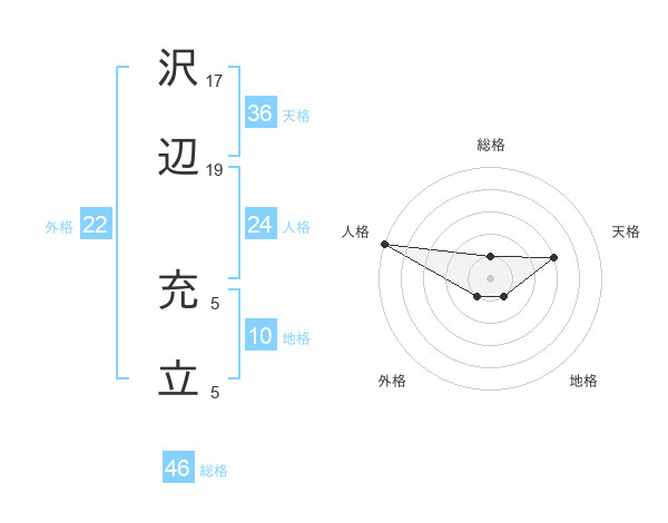 沢辺 充立さんを姓名の画数から五運を鑑定