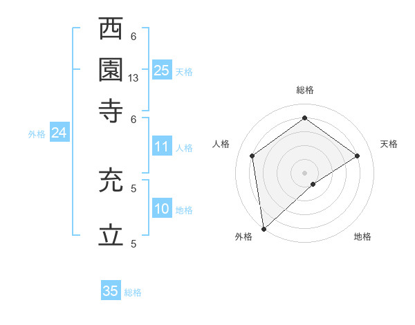 西園寺 充立さんの総格は35画の4点!