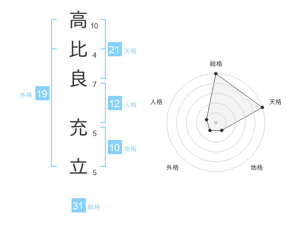 高比良 充立さんの総格は31画の5点!
