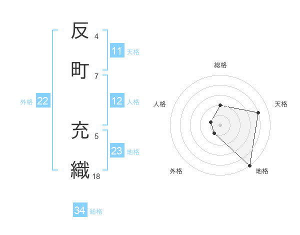 反町 充織さんの総格は34画の2点!