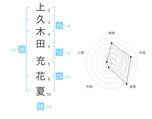 上久木田 充花夏さんを姓名の画数から五運を鑑定