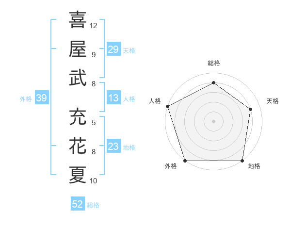 喜屋武 充花夏さんを姓名の画数から五運を鑑定