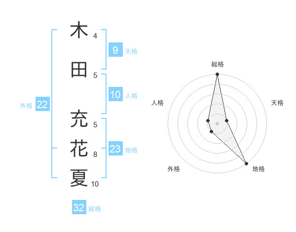 木田 充花夏さんを姓名の画数から五運を鑑定