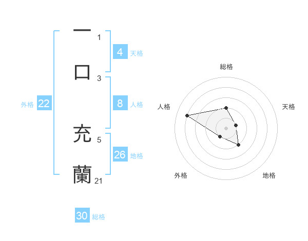 一口 充蘭さんを姓名の画数から五運を鑑定
