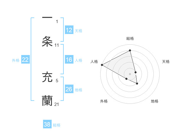 一条 充蘭さんを姓名の画数から五運を鑑定