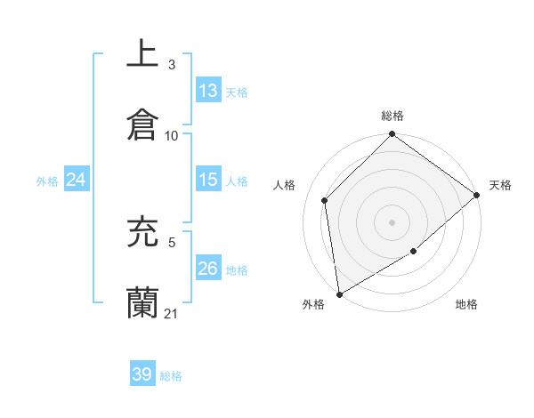 上倉 充蘭さんを姓名の画数から五運を鑑定