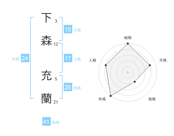 下森 充蘭さんの外格は24画の5点!