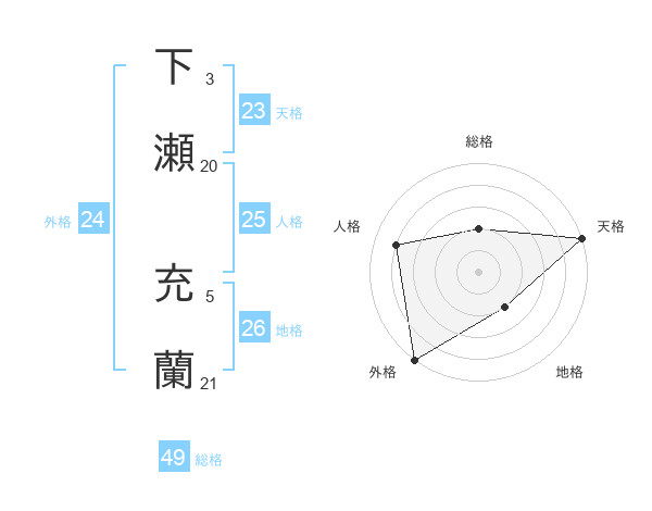 下瀬 充蘭さんの外格は24画の5点!