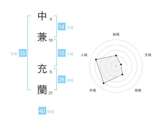 中兼 充蘭さんの総格は40画の2点!