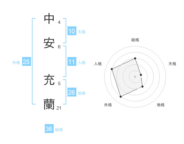 中安 充蘭さんを姓名の画数から五運を鑑定