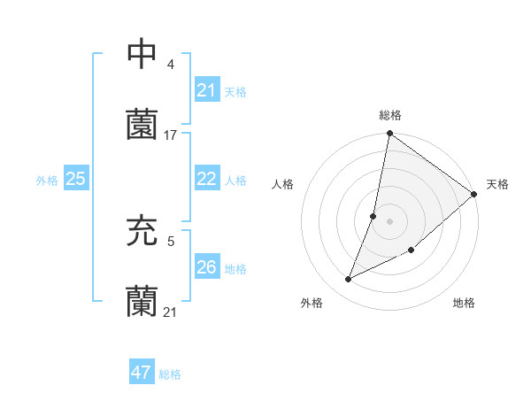 中薗 充蘭さんの総格は47画の5点!
