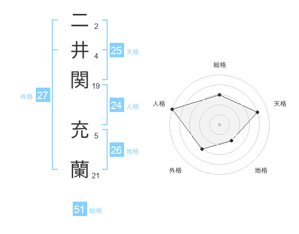 二井関 充蘭さんの総格は51画の3点!