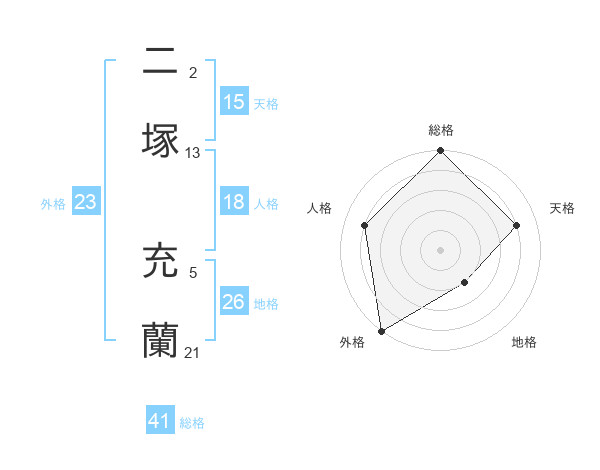 二塚 充蘭さんを姓名の画数から五運を鑑定